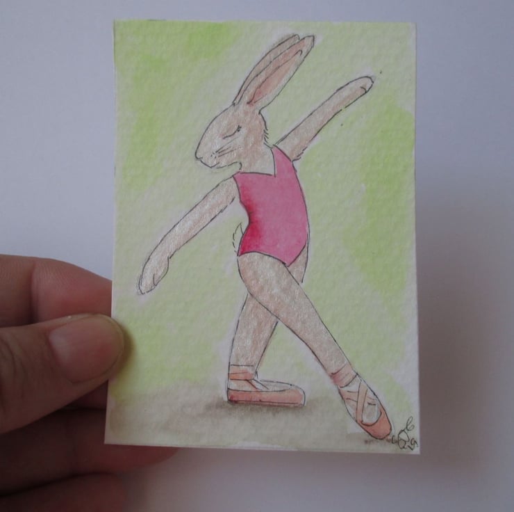 This is an original painting of a ballet dancing bunny. This is part of a series of these ballet bunny themed ACEOs, and each one is signed, dated and numbered.