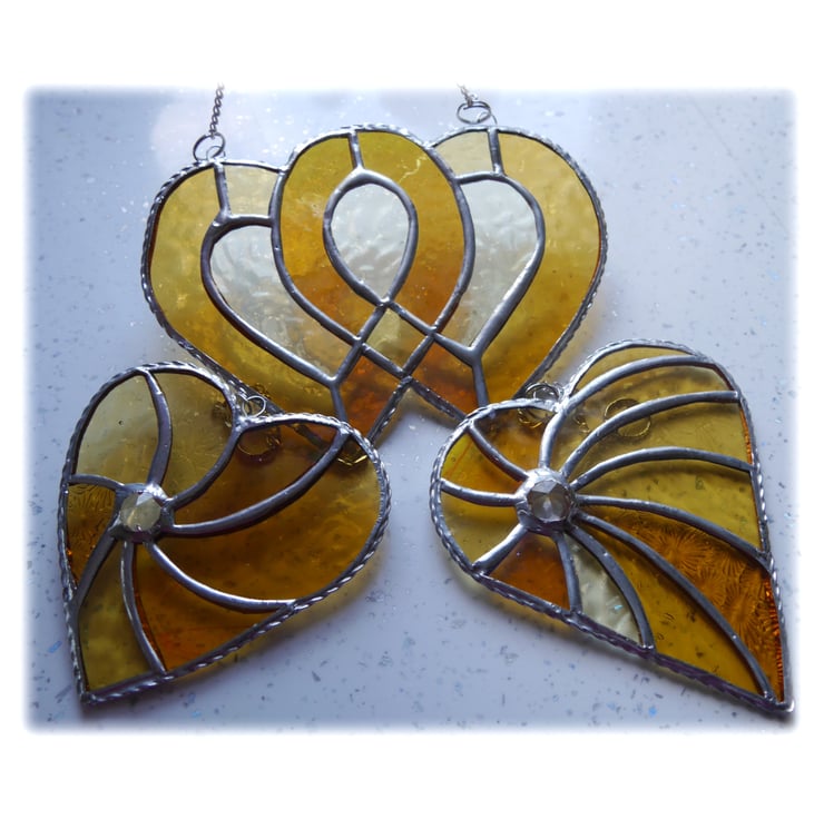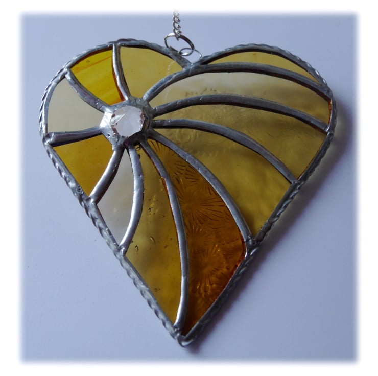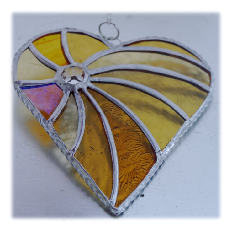 I've made the heart from 12 different types and shades of golden glass swirling out from a sparkling crystal.