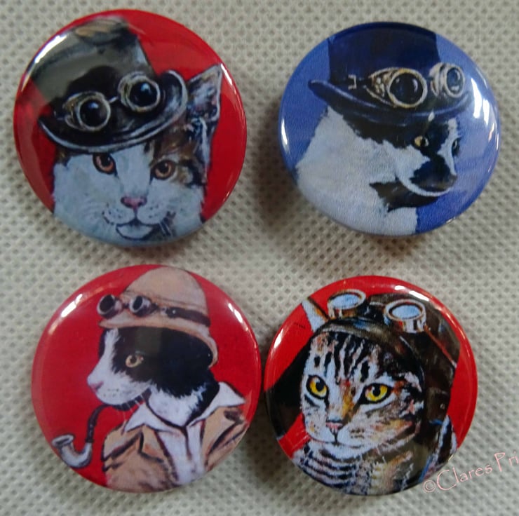 Steampunk Cats Art Badges