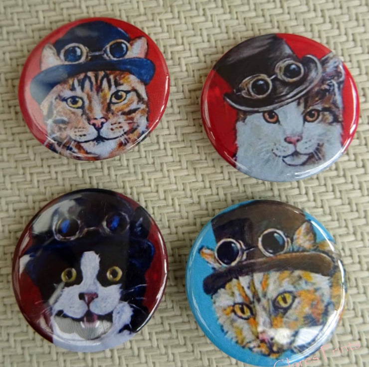 Handmade from my original acrylic paintings of a very cute cats in there many Steampunk costumes!