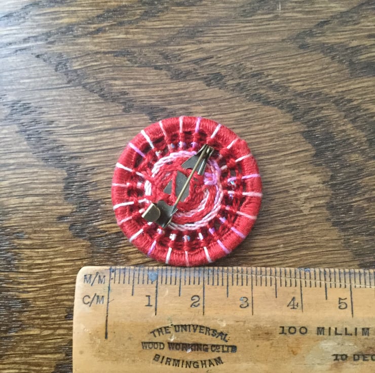 The brooch is worked on a 32mm metal ring and is light to post and makes a perfect small present for the person who has everything!
