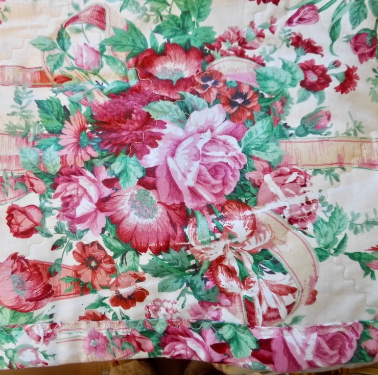 Please note that the backing fabric, which was an end of roll, has a flaw in the printing. I have shown this close up in the third photo, where I think it looks worse than actually does on the real thing. I didn't even notice it myself until I came to do the top stiching.