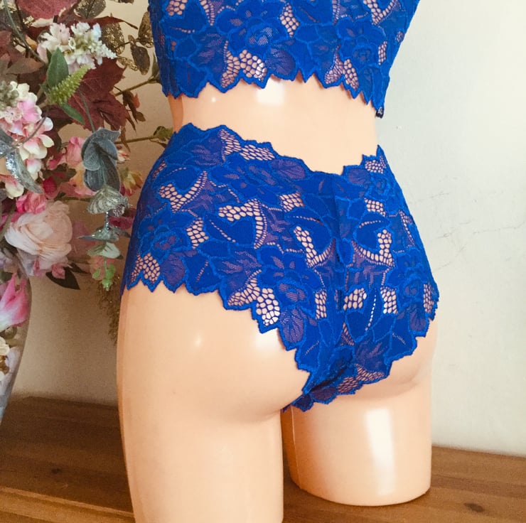 In a super soft, picot edge bold, blue lace