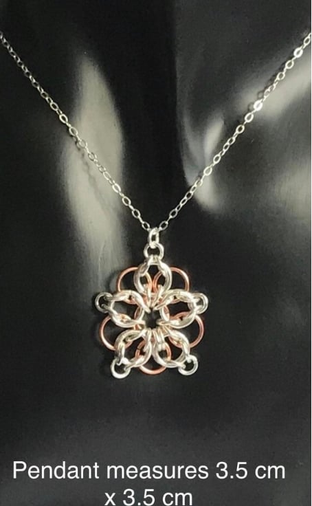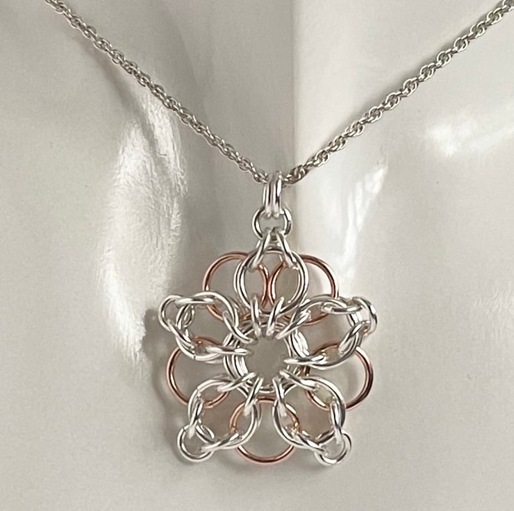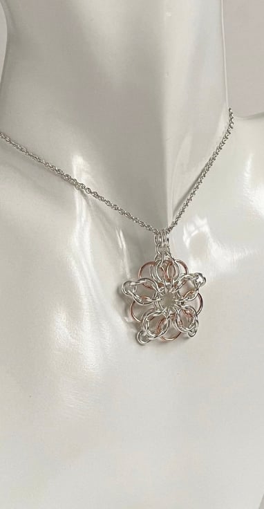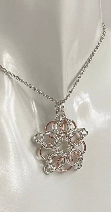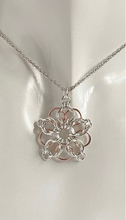 Sterling Silver Rose Gold Two Tone Chainmaille Pendant