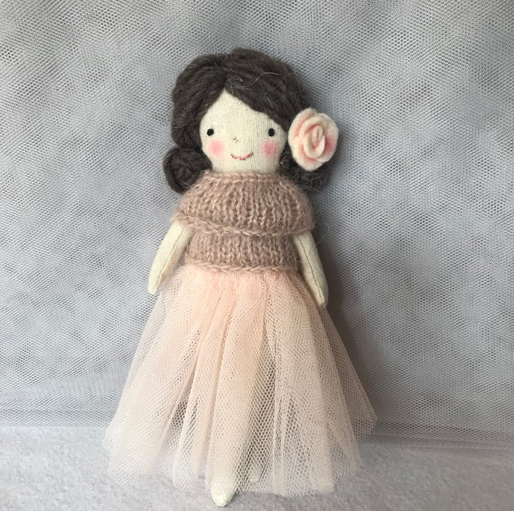 Kit includes -Fabric for body - Fabric for skirt - Wool for top - wool for hair - felt for rose - threads for eyes, nose and lips - stuffing - fully illustrated step by step instructions.