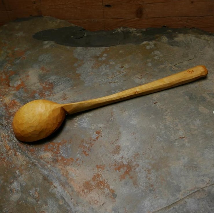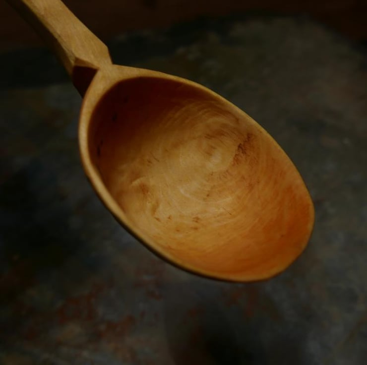 The spoon was treated with culinary grade linseed oil and allowed to dry, giving the bare wood a protective finish.