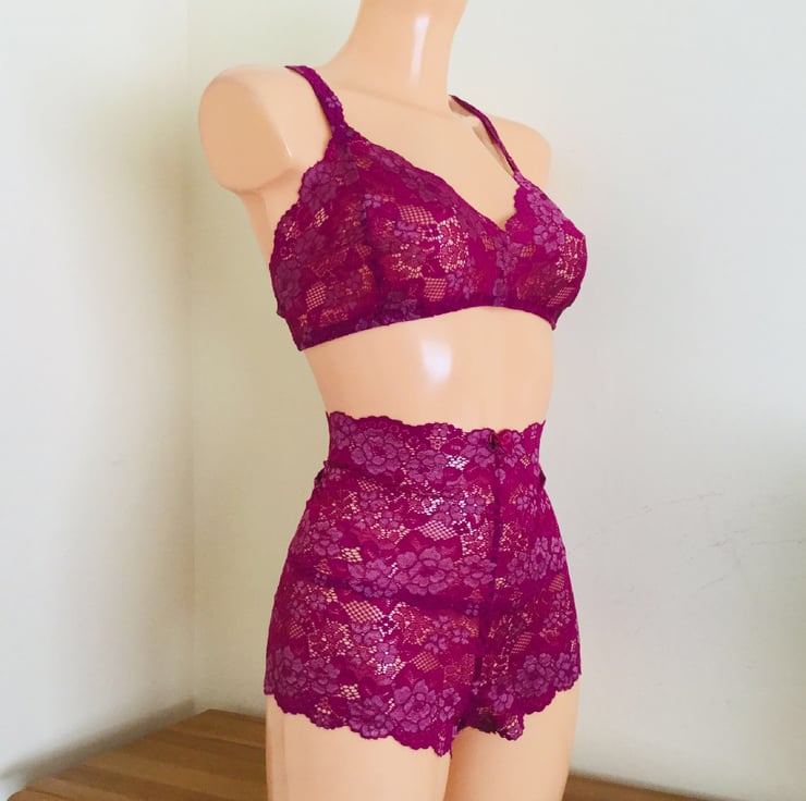 Pin up style lingerie set, with a retro silhouette and throughly modern wearability. custom made from hand dyed lace.