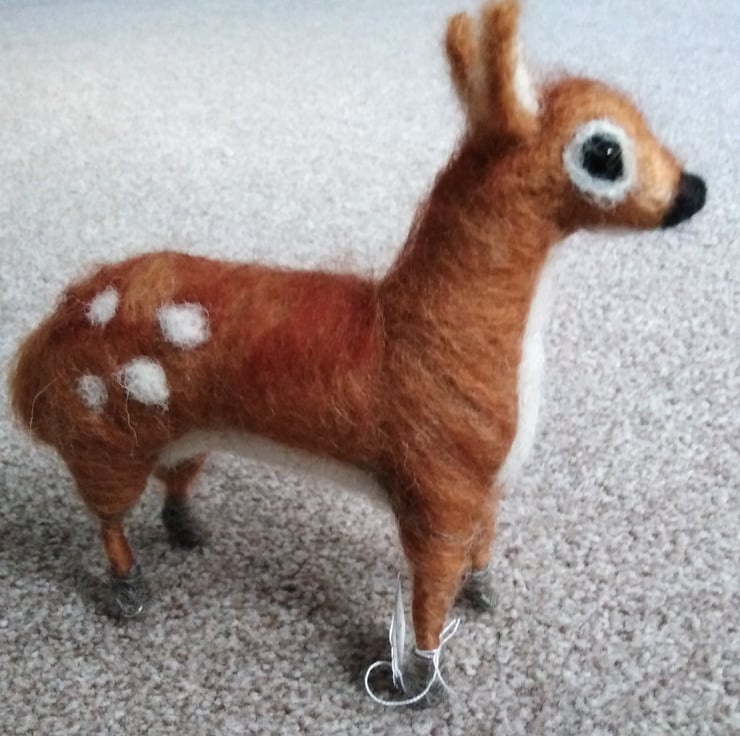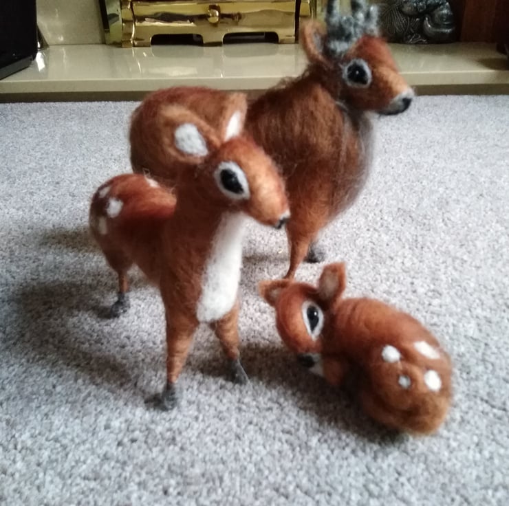 Needle Felt deer handmade using Merino Wool and wire structure. Set of stag, mother and baby deer can be purchased as a set for £80.