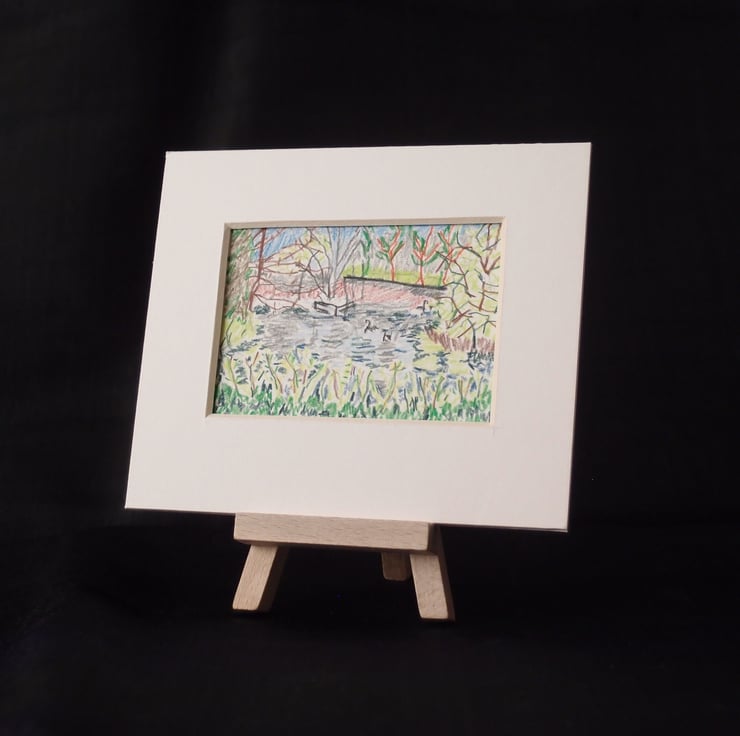 This is the sixth ACEO in my crayon collection of 10 drawings. It was sketched on location using crayon on cartridge paper. The dimensions are: 3.5 x 2.5 inches (89mm x 63mm). It comes packed in a cello bag to protect it with a mount (which measures approximately: 5.5 x 4.5 inches, or 137 x 115mm) and backing board plus a certificate of authenticity that I have signed. It also includes a mini easel so you can display it on a mantel piece or, alternatively have it framed. The sketch is not attached to the backing board to make it easier to display it in another way.