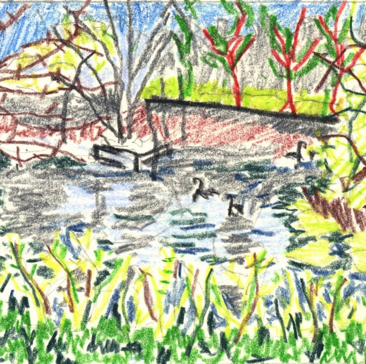 I spend a lot of time in Victoria Park in east London which is our local park and I find numerous views worth drawing while I amble around.