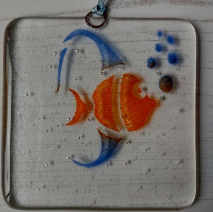 These fish suncatchers are what remains of my range of sea creatures decorated range of suncatchers, and my seaside themed glassy goodies. They have been reduced in price for the Folksy Perfectly Imperfect sale, as they are an end of line.