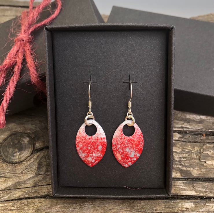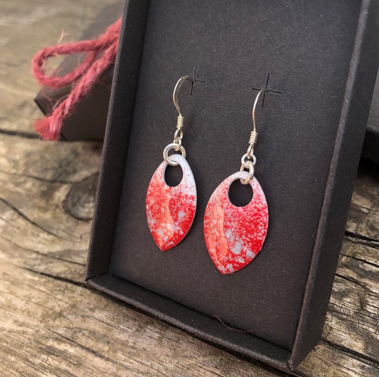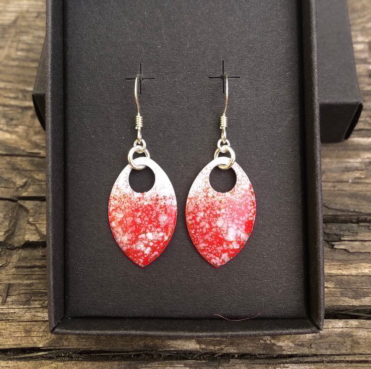 ‘Darla’ Red, white and grey enamel scale earrings. Sterling silver.