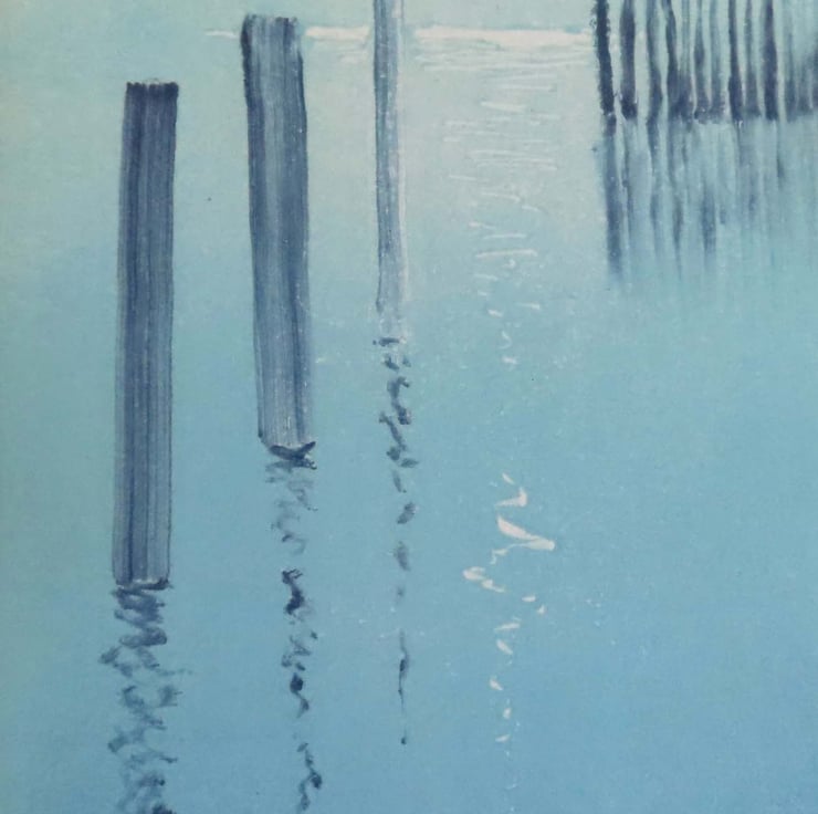 A blank greeting card reproduced from my original monoprint of the sea glimmering in the moonlight. Each card measures 6x4 inch (10x15.5cm).