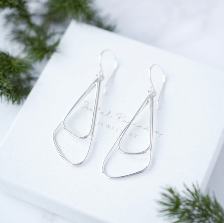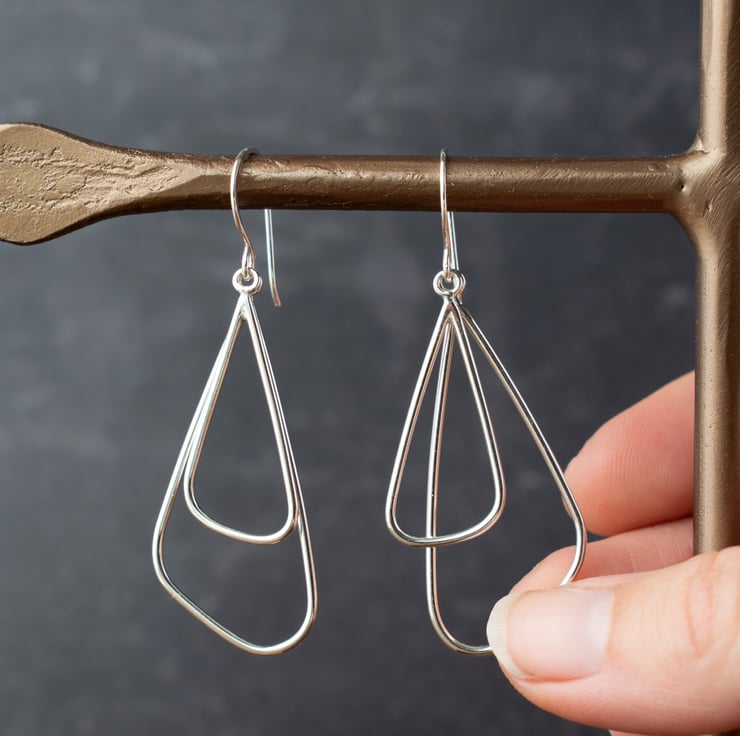 This unusual design featuring nesting triangular shapes which swing independently, reminding me of moth wings. Their simple yet striking design is the perfect addition to your contemporary wardrobe.