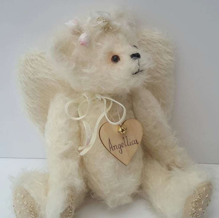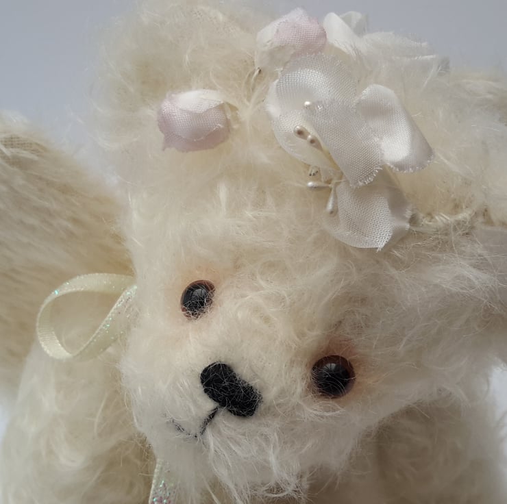 This is for a made to order mohair angel as shown in the photos, a wedding/anniversary bear or Memory bear.