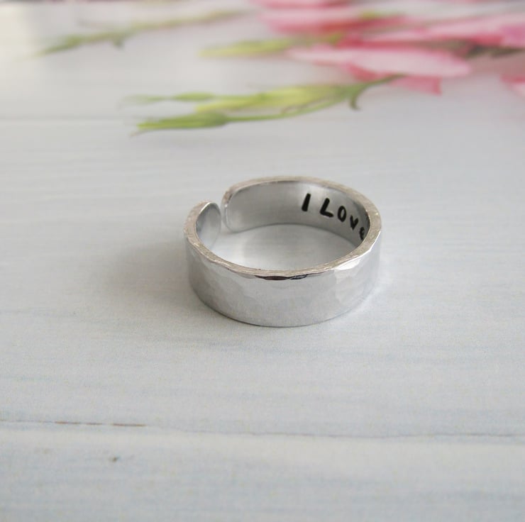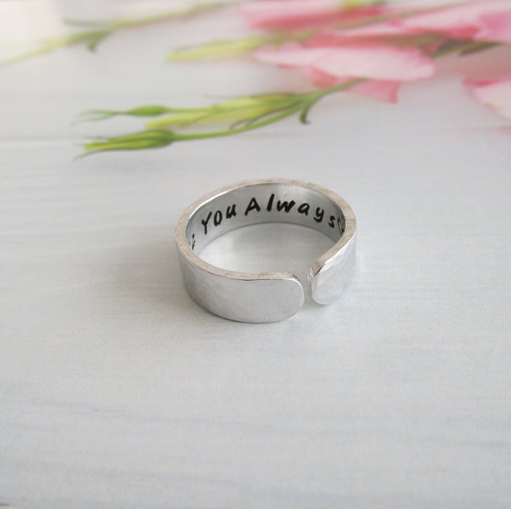 A beautifully textured adjustable cuff ring with a personal hidden message only the wearer knows is there.