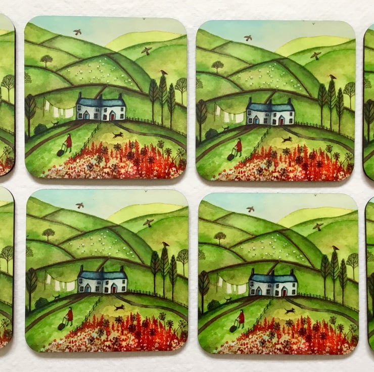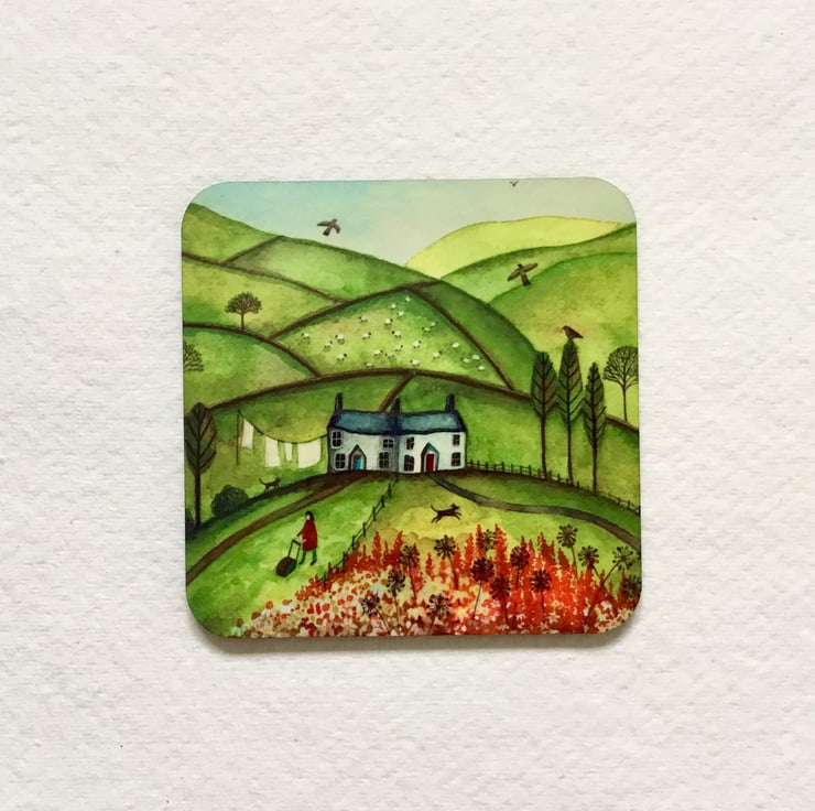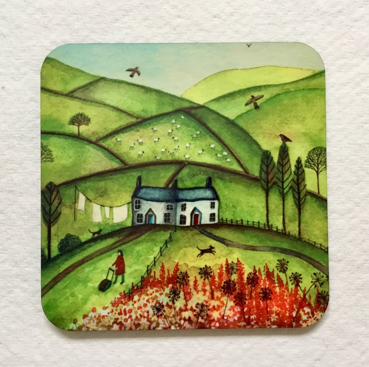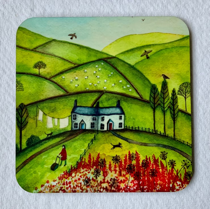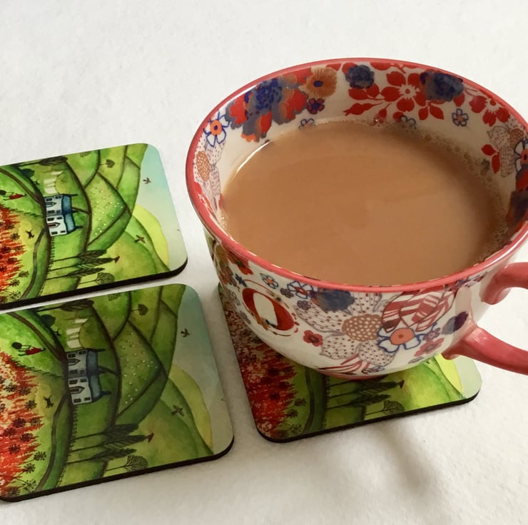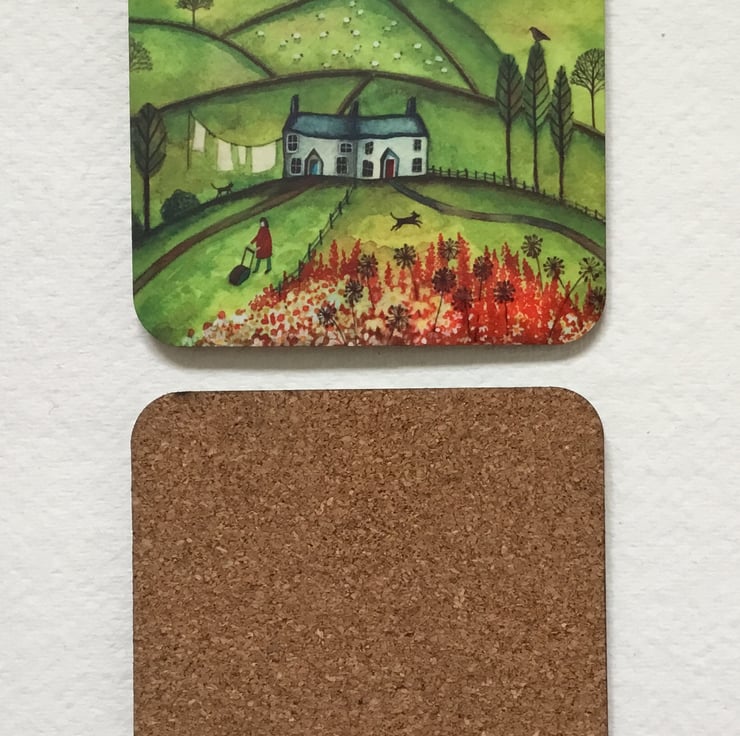 This listing is for 1 cork backed coaster which measures 9x9cm and has a gloss finish. It features my painting Soaring High. These are really good quality coasters, and I will be getting more designs printed soon.