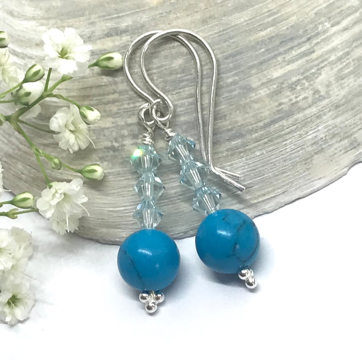 Beautiful turquoise earrings for a pop of colour and crystals for a touch of sparkle. These would make a lovely gift for someone special.
