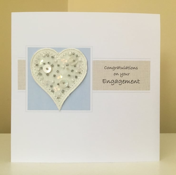 A personalised engagement card, available in a range of colours and with the couples names printed below the greeting on the front of the card (not shown, but similar examples can be seen on my other cards e.g. pearl wedding anniversary card).