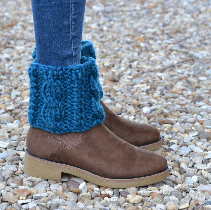 Made in a lovely cable and twist design. Now in 2 sizes, 5" and 7"5" approx in length and will stretch to fit a leg 14" in width.