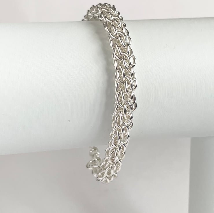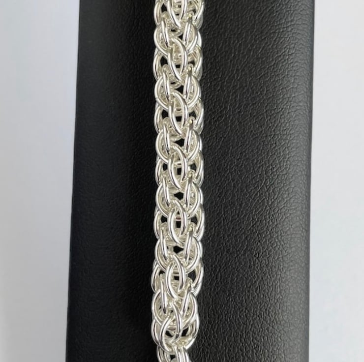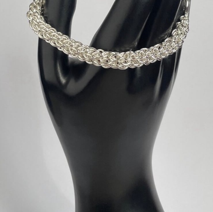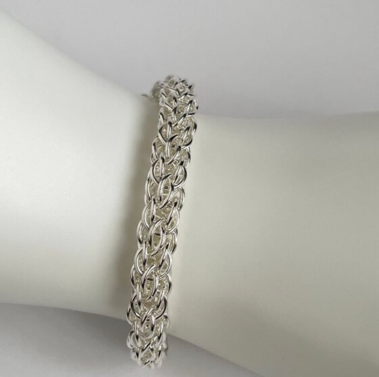 I’ve created this bracelet with sterling silver rings to create this lovely intricate woven lace chainmaille bracelet, which is available in 5 lengths.