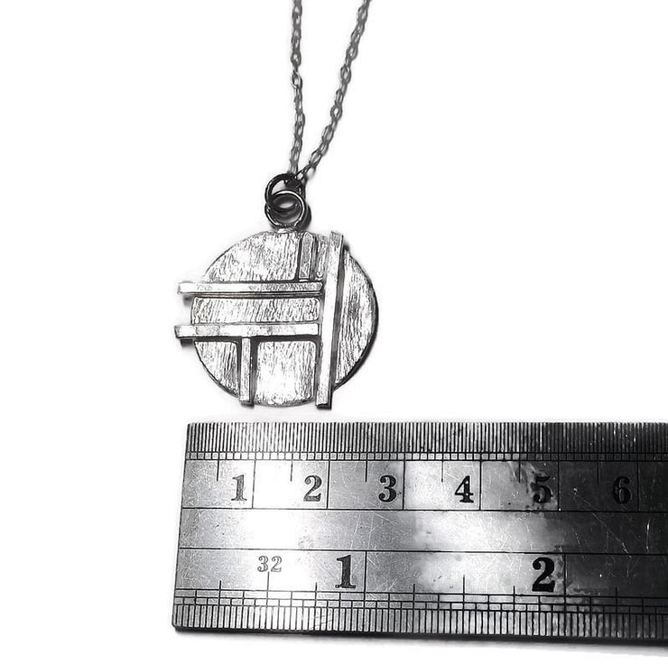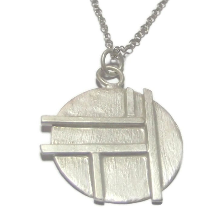 Handmade Sterling Silver Disc Pendant, Geometric Grid Pattern Necklace