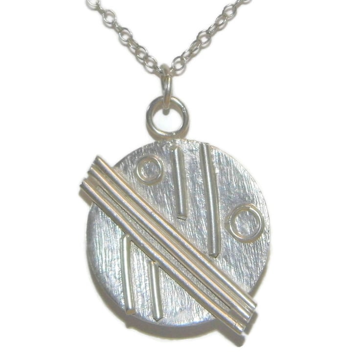 Handmade Fine Silver Patterned Disc Pendant, Artisan Jewellery UK