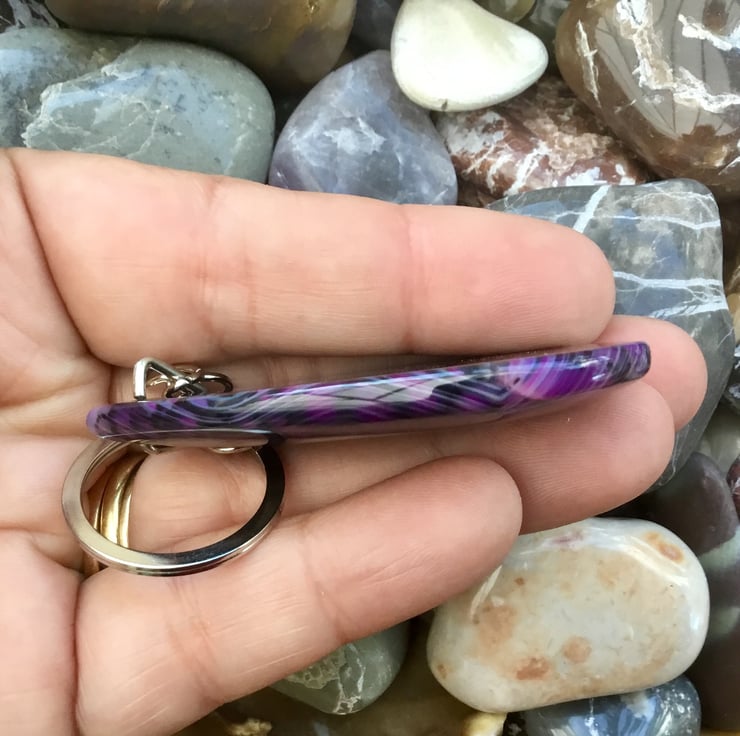 This stunning Agate pendant bead is something which should be on show so I thought it would make a fantastic keyring, or handbag charm for any lucky lady. If you wanted to buy a gift as a token of love, or friendship, then this would be ideal. Equally, ideal for anyone who just loves Agate and purple tones.