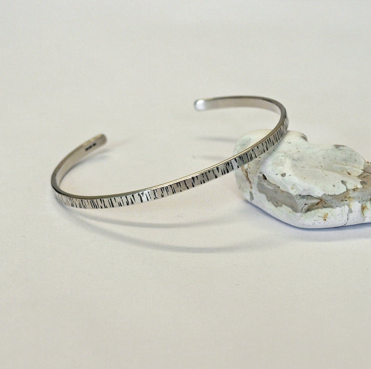 The pattern on this lovely simple cuff has been inspired by the patterns found on the bark of silver birch trees.