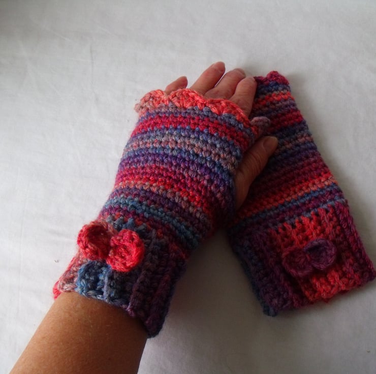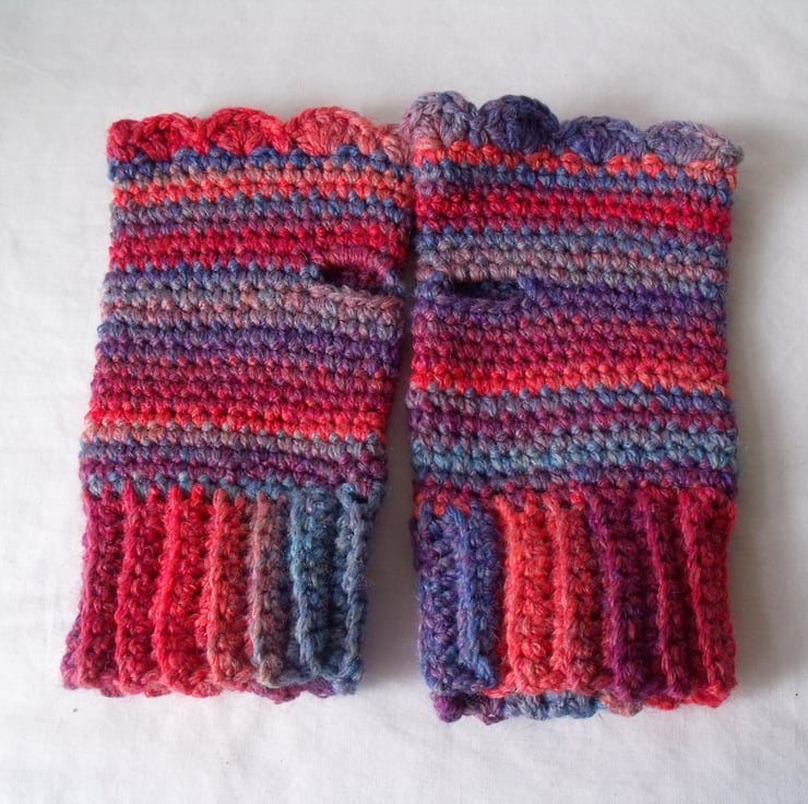 Here we have a pair of crocheted fingerless gloves.