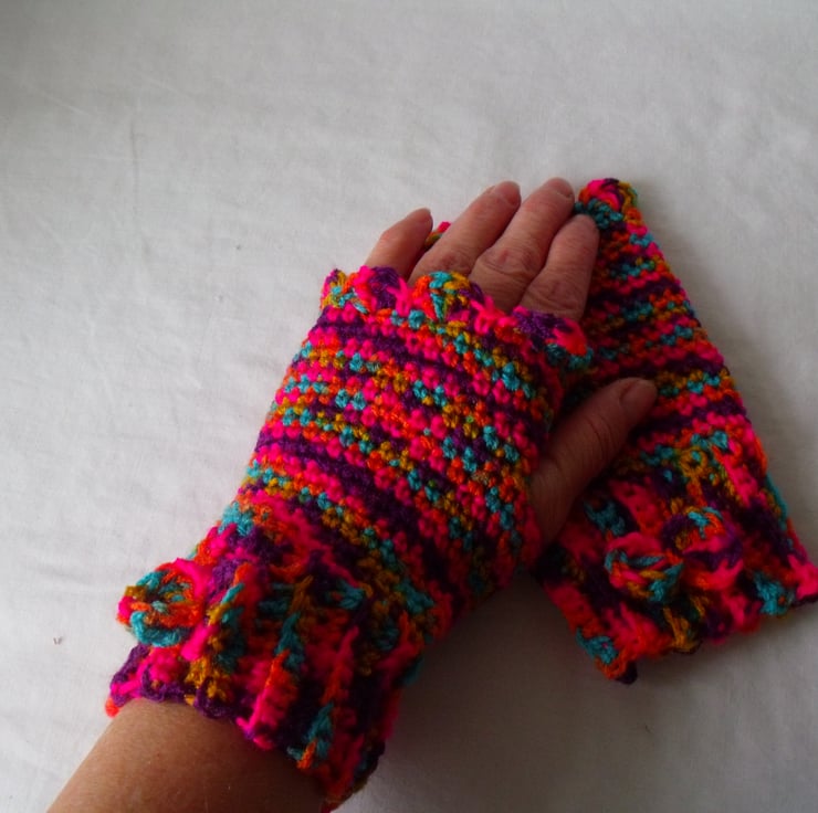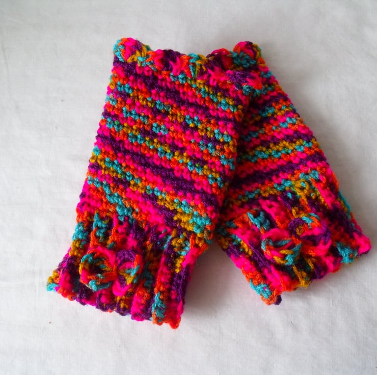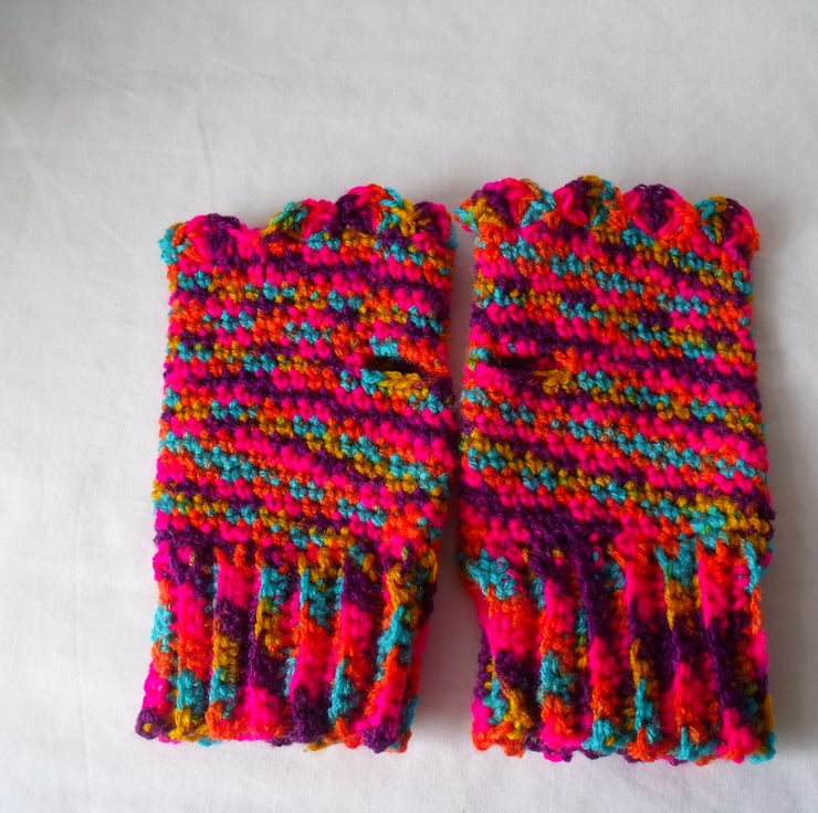 Here we have a pair of crocheted fingerless gloves.