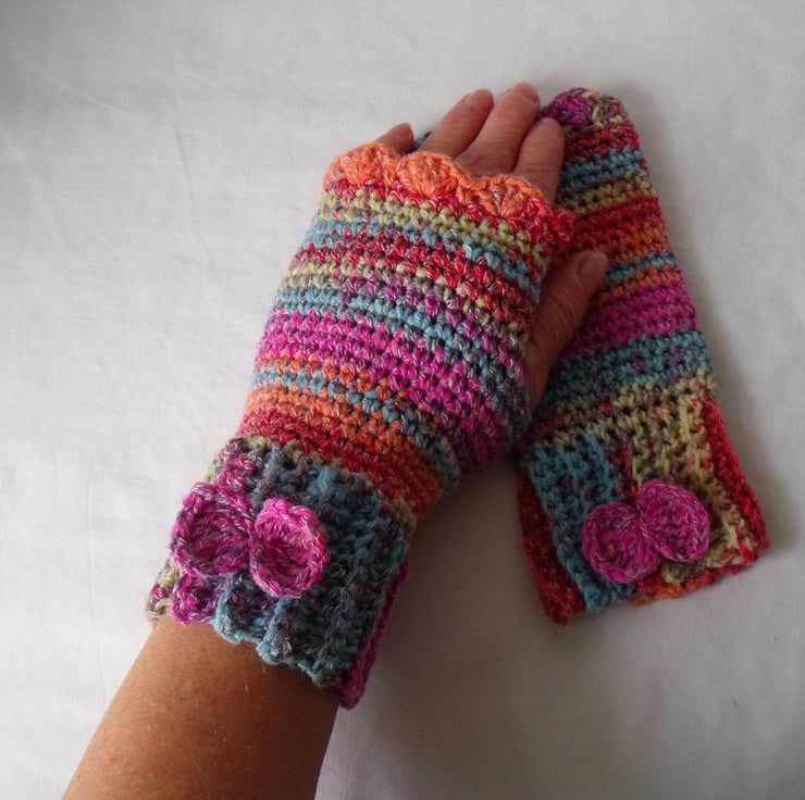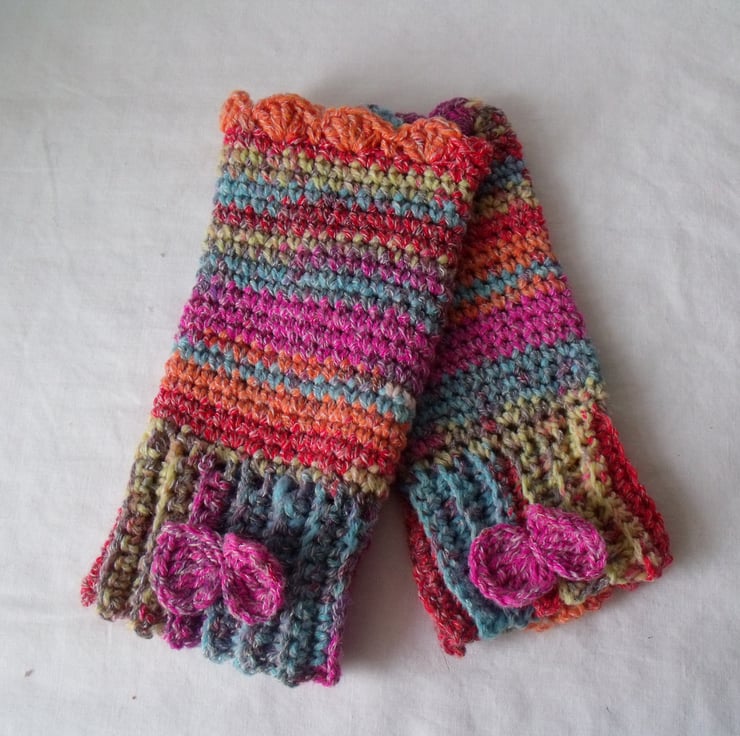 I've added a crocheted bow to the back of the cuff so you know which is left and right.