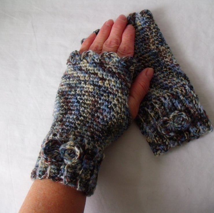 Here we have a pair of crocheted fingerless gloves.