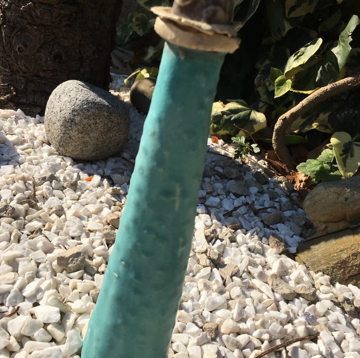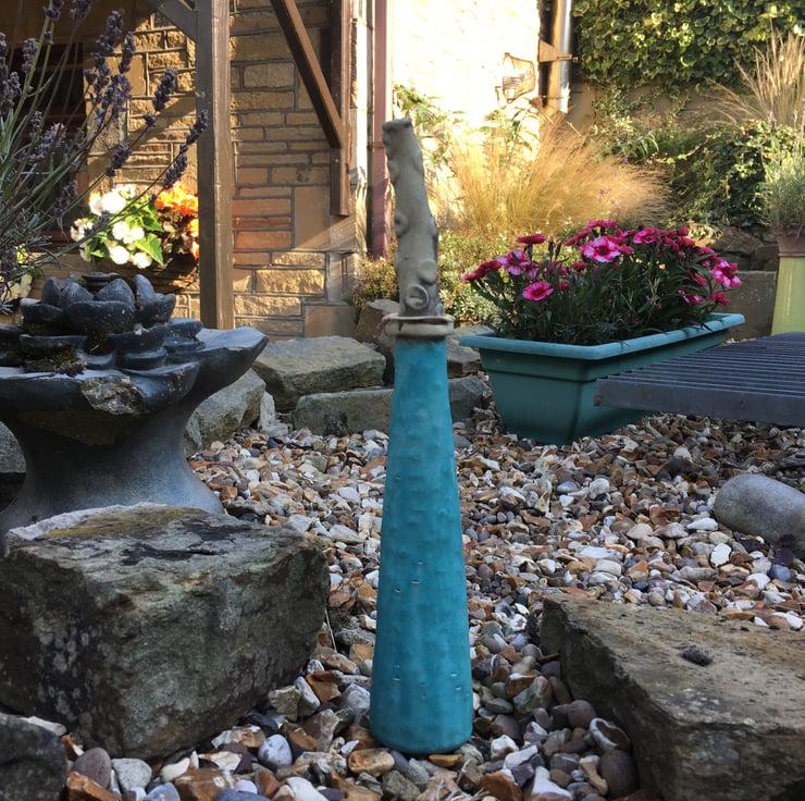 It can be placed inside on your mantle piece or window sill or hidden amongst pretty garden plants and flowers as shown in the picture. I would suggest if placing the vessel outside that you support them within the soil to avoid windy weather blowing them over.