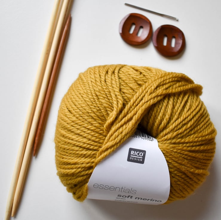 green wooden buttons chosen to compliment the yarn colour