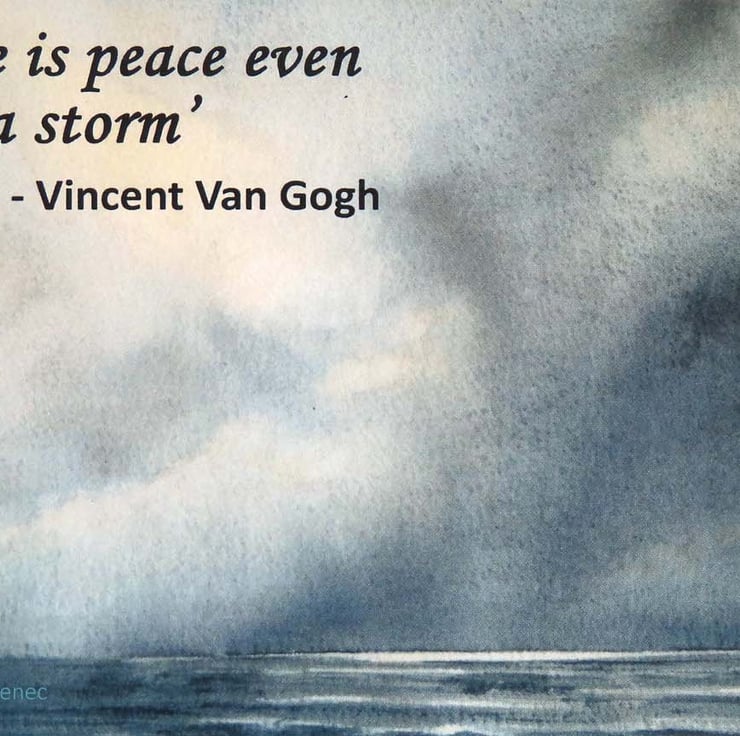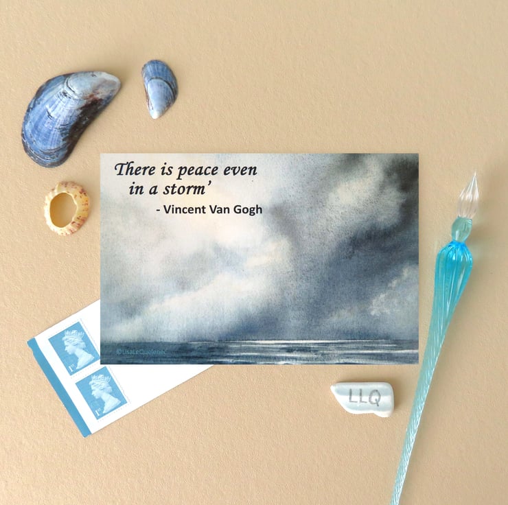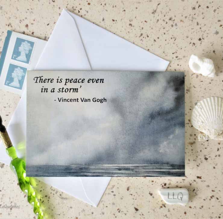 A blank greeting card featuring a quote of encouragement for difficult and stormy times.