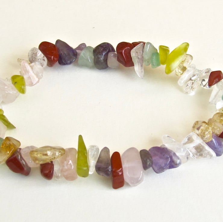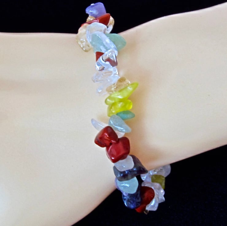 Here is a very pretty bracelet which has 57x drilled chips, in a rainbow of colours.