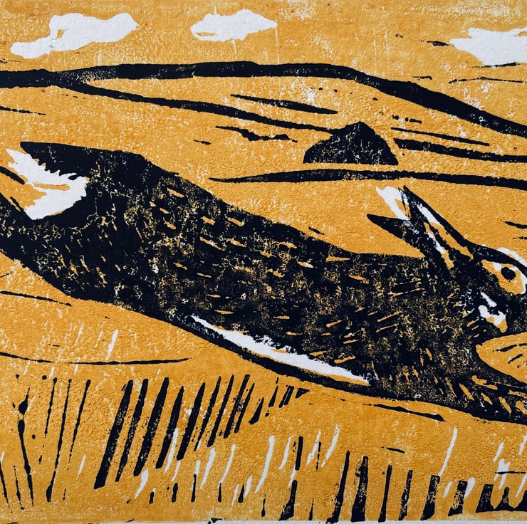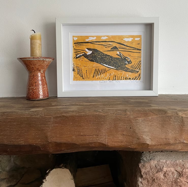 I am inspired by the landscape and native wild creatures of Cumbria and the Northern Pennines where I live. Hares a pretty rare these days and I saw 2 hares in one week this summer, I never realised how big and fast they are, a real native beauty for sure and one to be celebrated.