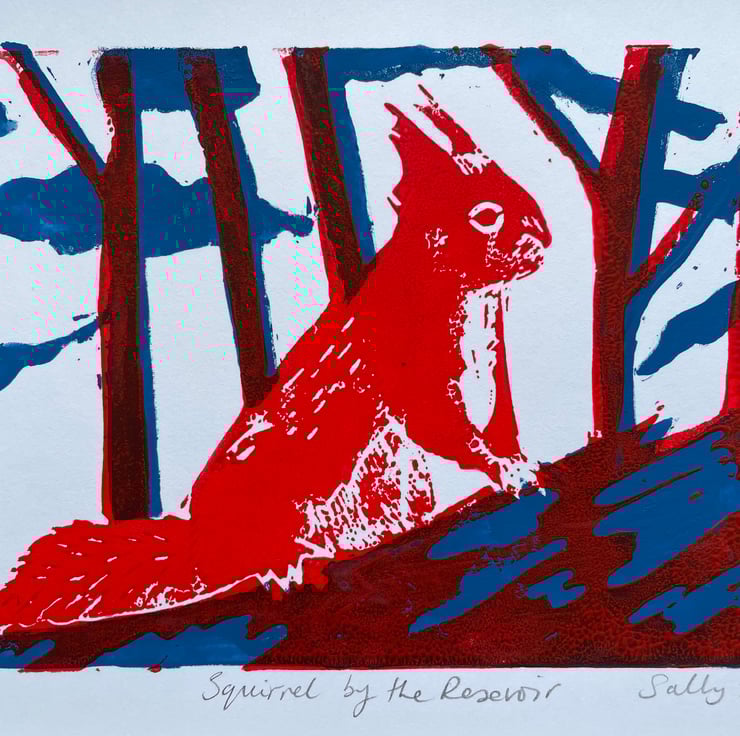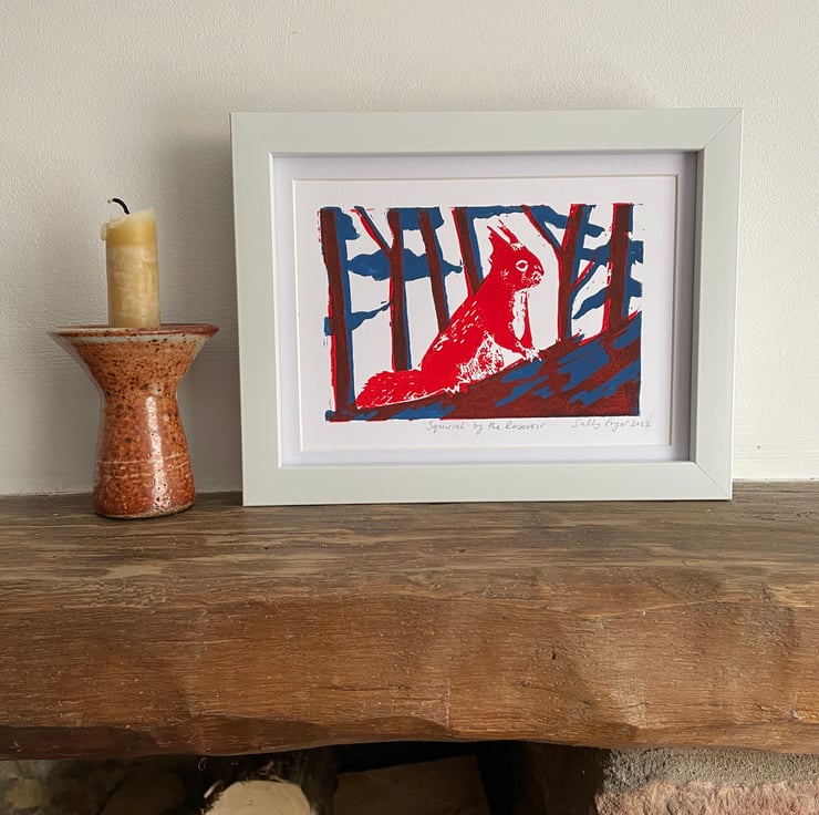 This image is of a red squirrel near where I live in North Cumbria, they are making a come back here due to vigilant work by a group of local enthusiasts. It is printed by hand from a lino cut and is an original print NOT a printed reproduction!!