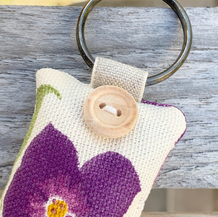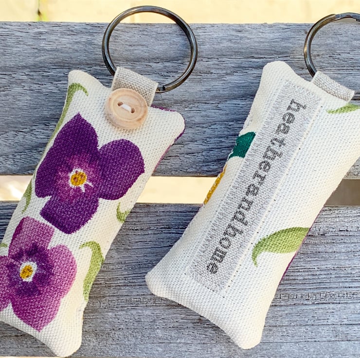 In Emma Bridgewater 'wallflower' fabric, these fragrant and tactile key rings are finished with a rustic wooden button on one side and a linen 'heatherandhome' label on the other side. Super easy to spot in the key pot, cupboard or drawer, the bottom of your handbag or wherever else you've left them, the metal split ring will keep your keys safe too.