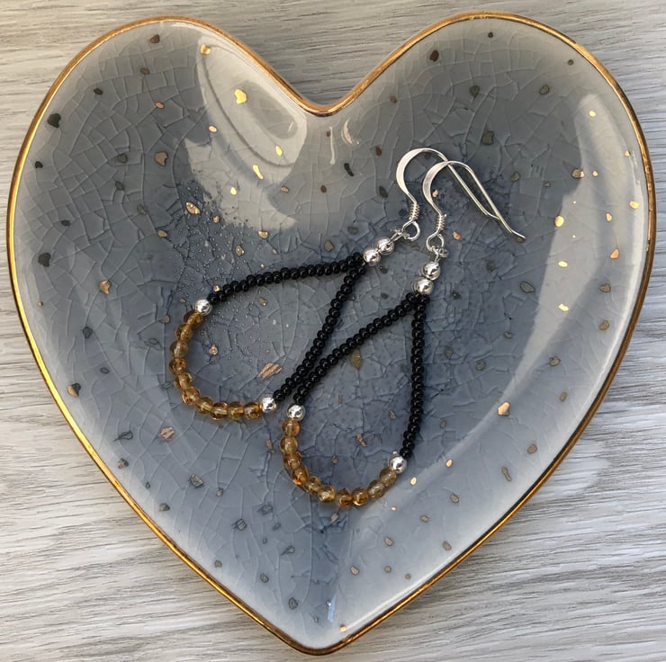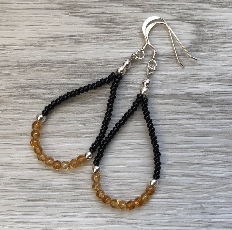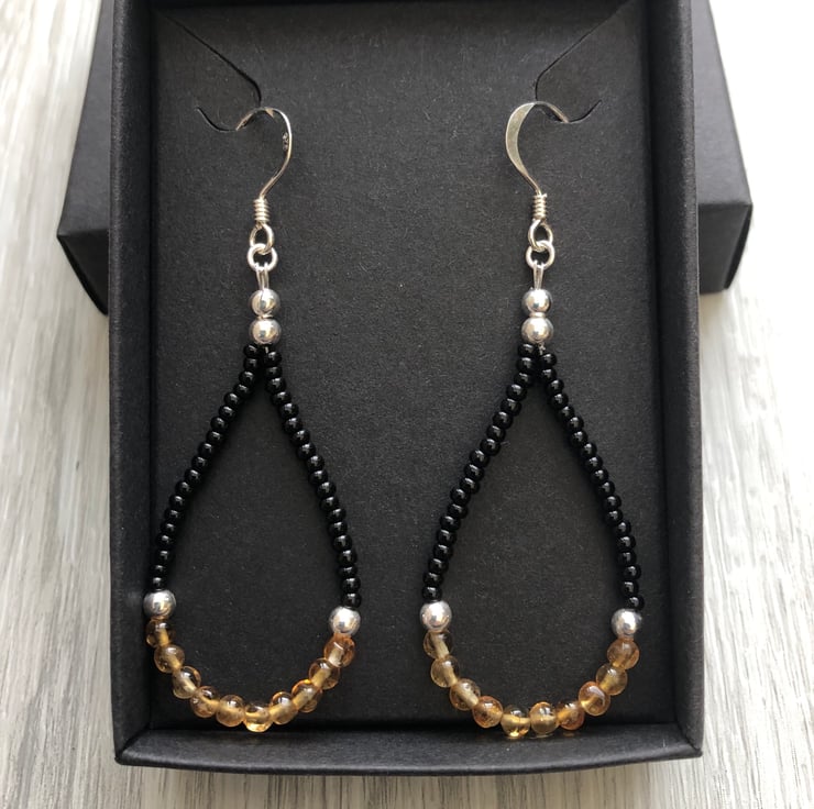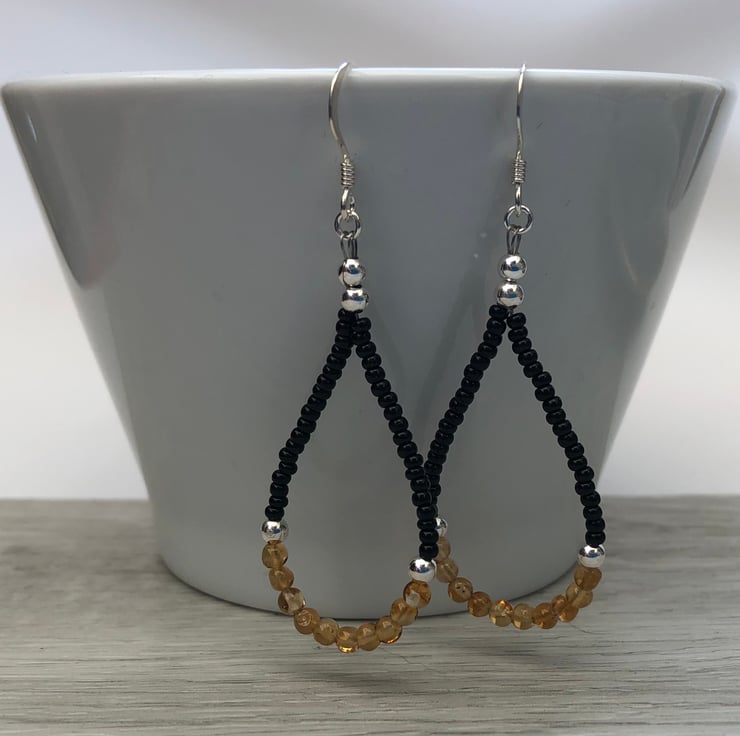 This pair has been made with Semi precious citrine beads and black Czech glass separated by sterling silver beads.