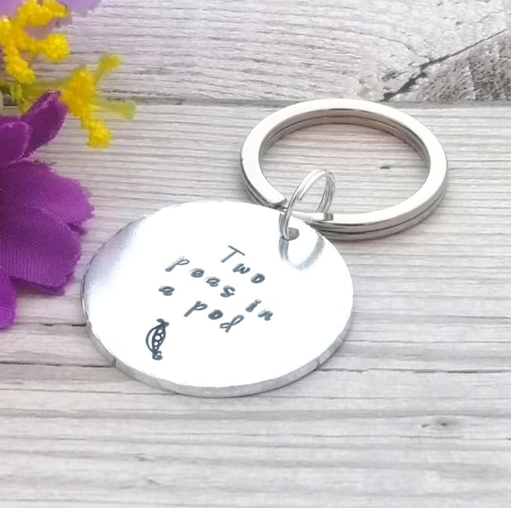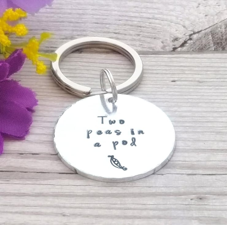 Are you like two peas in a pod? Give pea number 2 a cute reminder with this simple keyring.