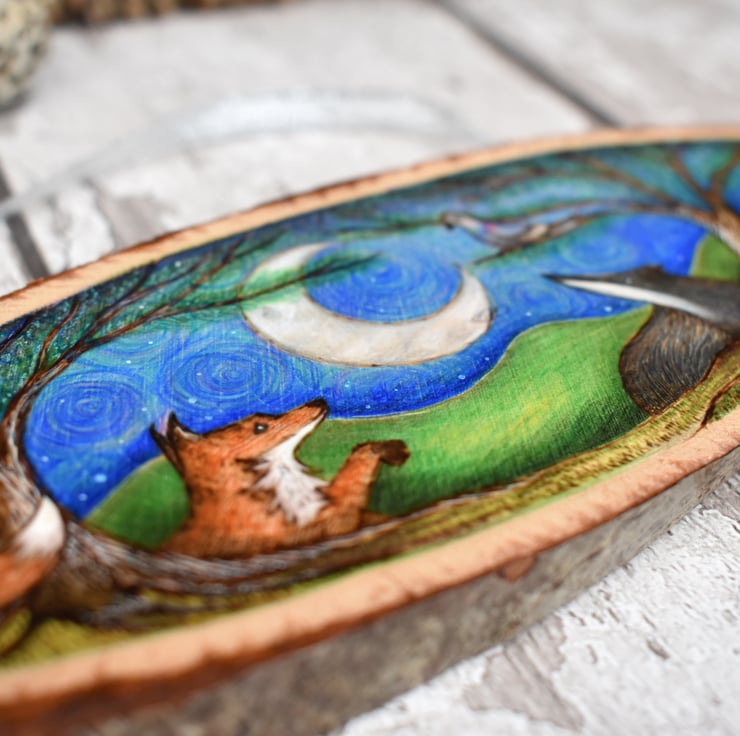 All my items feature my own design and composition. Each piece is unique. Please note, wood is a natural material and each piece has it's own knots and imperfections that make it beautiful. I seal the wood with varnish to help protect it. To care for your piece; keep out of direct strong sun, and damp conditions. This is an indoor piece.