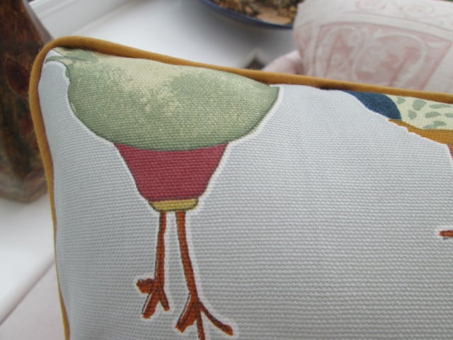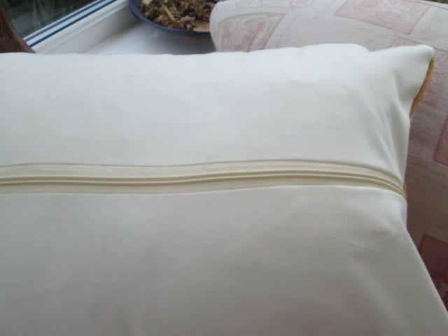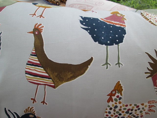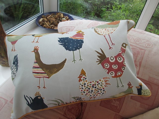 Hens cushion cover with lovely soft polyester inner, zip and mustard piping.