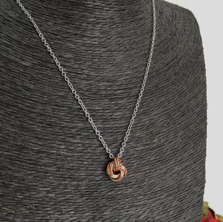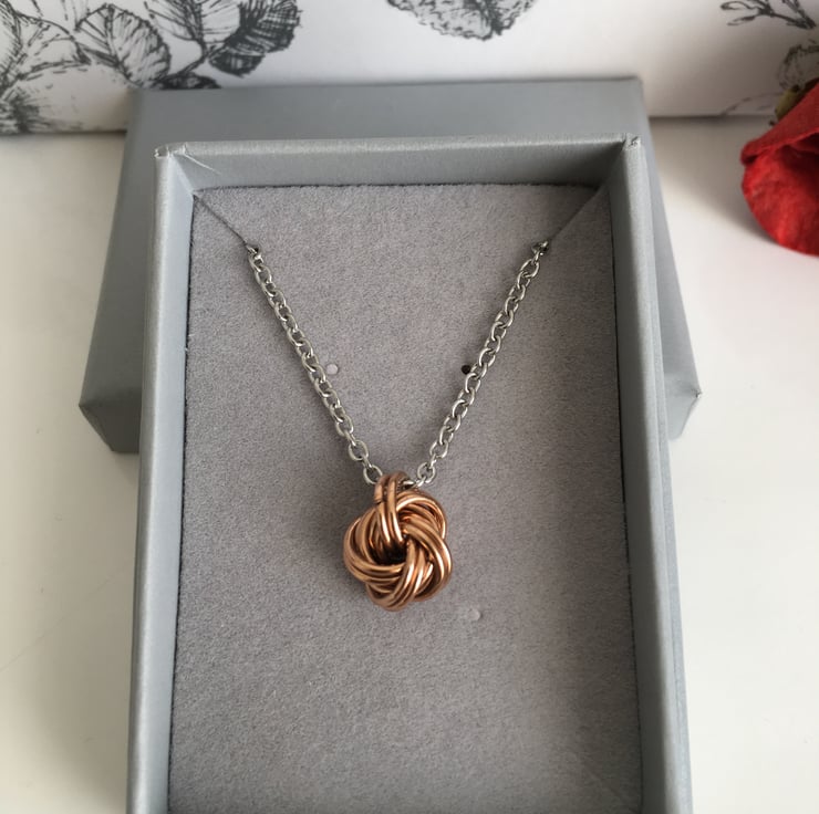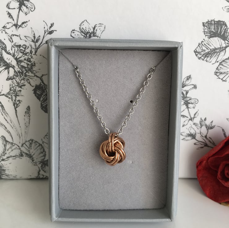 A light and open dainty knot pendant is a lovely feminine gift to celebrate a special anniversary.