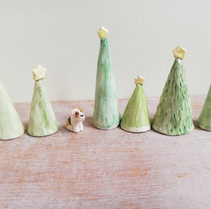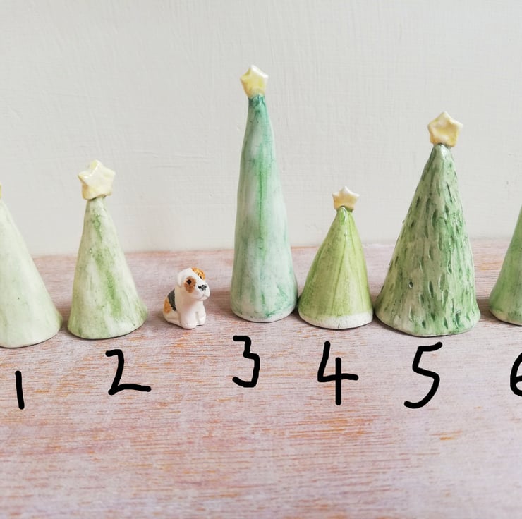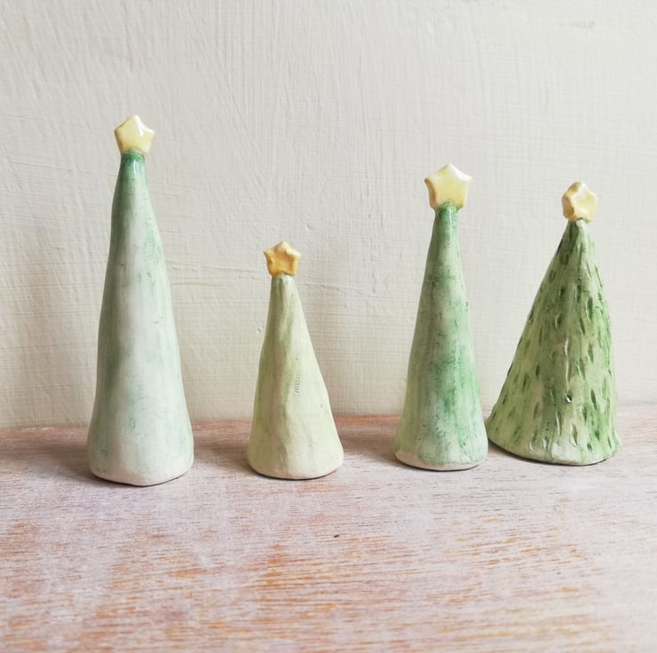 Each tree is individually handmade in white earthenware clay then handpainted and clear glazed in lead free glaze. Each is fired 2 times in our electric kiln.