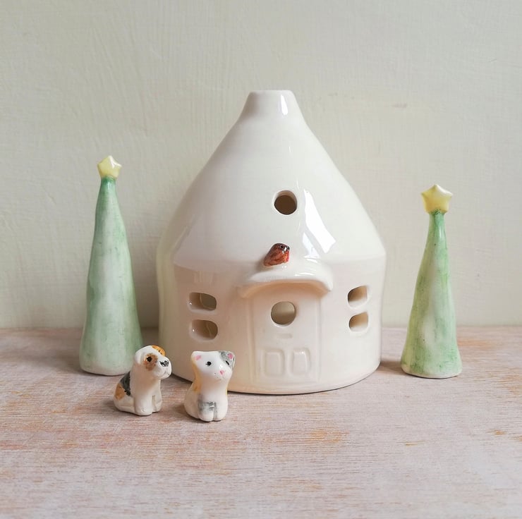 I originally made these to sit with a tea light house for Christmas and have found that they are a popular as a little stocking filler or cake topper. They also suit a little woodland scene.