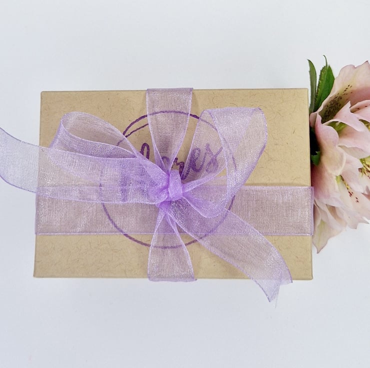 Always sent out boxed up with a bow, all ready to give away or open up. The box is made of recycled materials.