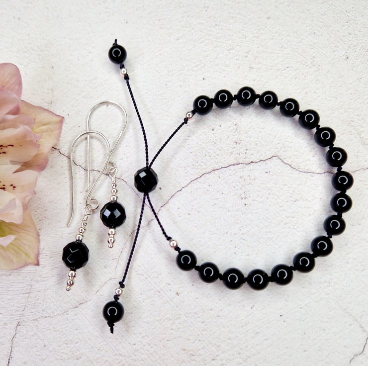 Black onyx beads on a silk cord bracelet are available on a separate listing, if you wish.