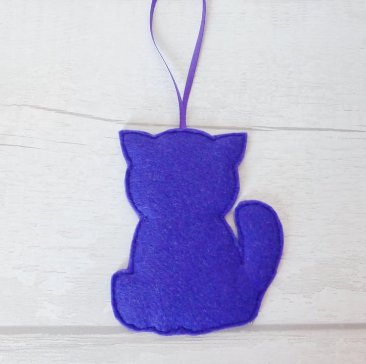 1 Cat hanging decoration made from purple felt.
